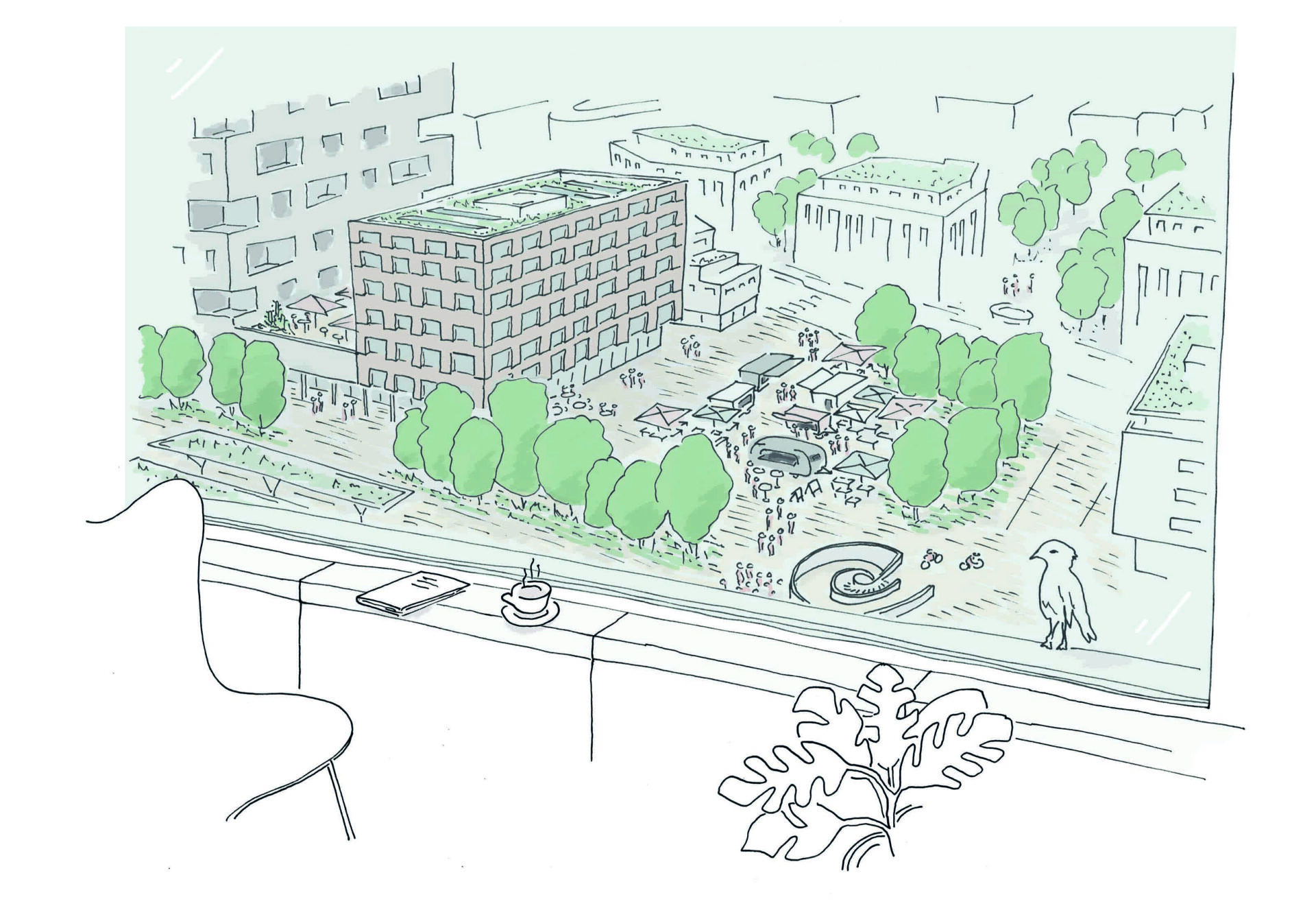 Zum Beispiel wenn es um die Abstimmung von Bauetappen geht oder ganz konkret, wenn durch eine gemeinsame Zufahrt zum Parkhaus mehr Platz für Freiflächen zur Verfügung steht, eine abgestimmte Unterkellerung mehr Pflanzfläche schafft oder die Freiflächen übergreifend und sich ergänzend geplant werden.